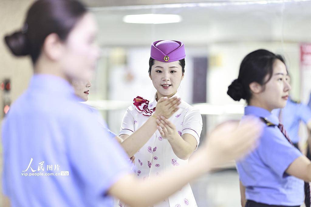 随着国庆长假临近,2025年9月23日,重庆北车务段邀请重庆客运段礼仪老师对客运工作人员开展服务礼仪培训,重点对客运员的妆发、站姿、蹲姿、手势指引等方面进行强化训练,提升客运“窗口”形象,为即将到来的国庆假期运输做好准备。苏志刚摄(人民图片网)