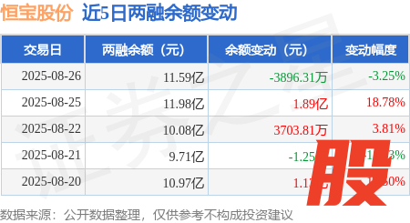 本站消息,8月26日,恒宝股份(002104)融资买入5.82亿元,融资偿还6.21亿元,融资净卖出3896.31万元,融资余额11.59亿元。
